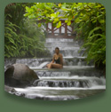 まるで人口的に造ったかのような、人間にとって快適な自然なのです。亜熱帯ジャングルでありながら、昼間も日陰に入れば爽やか、またどこにいても心地よい風が吹きます。熱帯は日中の温度は30度を超えますが、夕方5時位になるとグット温度が下がり寝苦しい熱帯夜にはなりません。あまりにも多い鳥・カエル等が食べてしまうのか、これだけの森がありながら蚊は少なくヒル等の恐い生物にも出会いません。コスタリカにはそんな快適なジャングルがあるのです。極め付けはタバコン温泉。アレナル火山の麓から湧き出るお湯が渓流となり流れ、その水温が39℃前後!(自然のままです)どう言うわけか人間に丁度良いのです。これを称してコスタリカの自然が奇跡と呼ばれます。